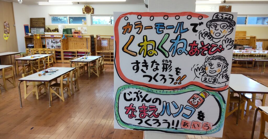 ハンコ作りと、モールで作る「くねくね」です。