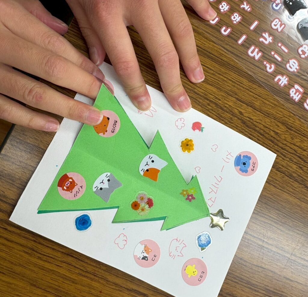 子どもたちはクリスマスカードを作って、「エンジェルシャウト」の方々に感謝の気持ちを伝えました。